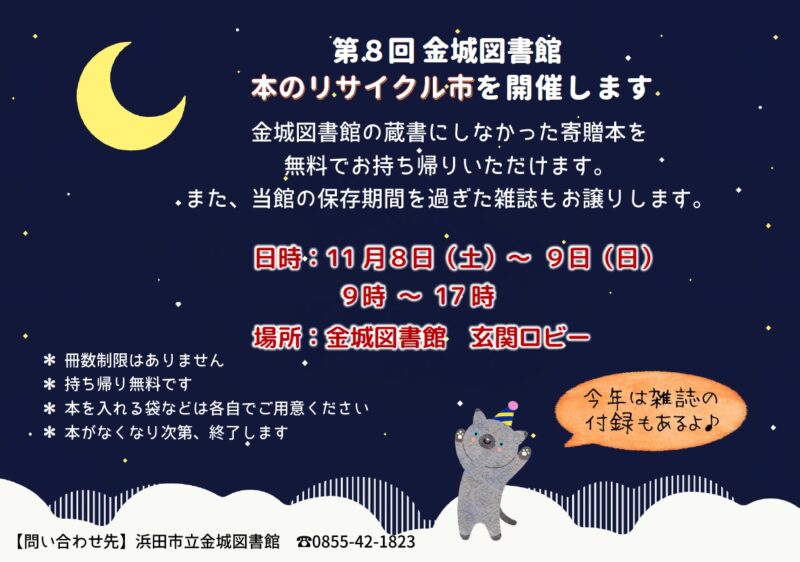 11/8 (土)~9 (日) 金城図書館★本のリサイクル市を開催します