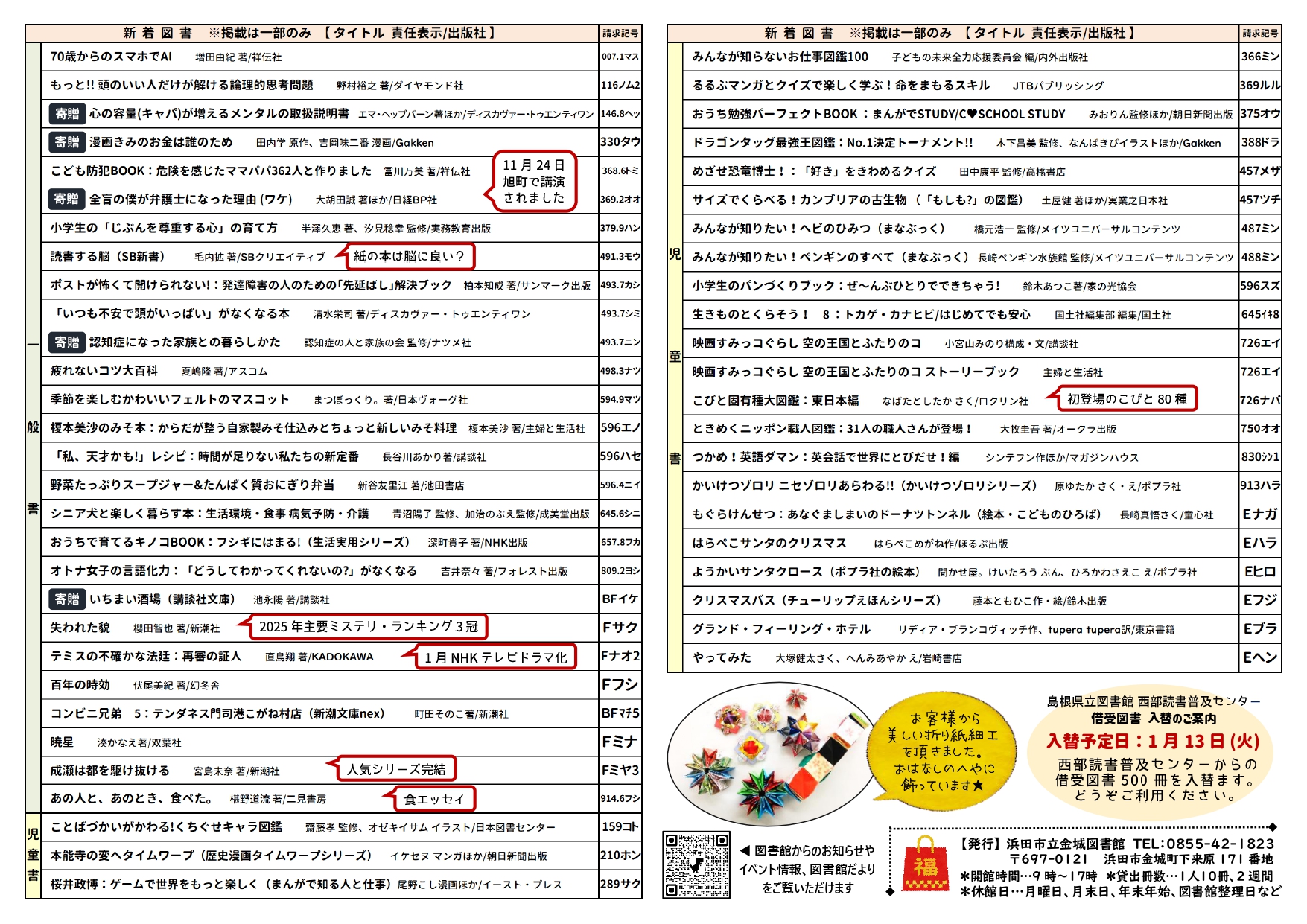 PDFはこちら(金城図書館だより1月号)